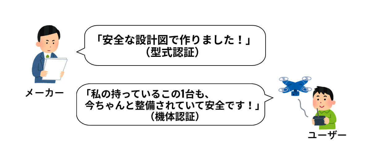 • 「機体認証」は私たちユーザーが自分の機体に対して受けるもの